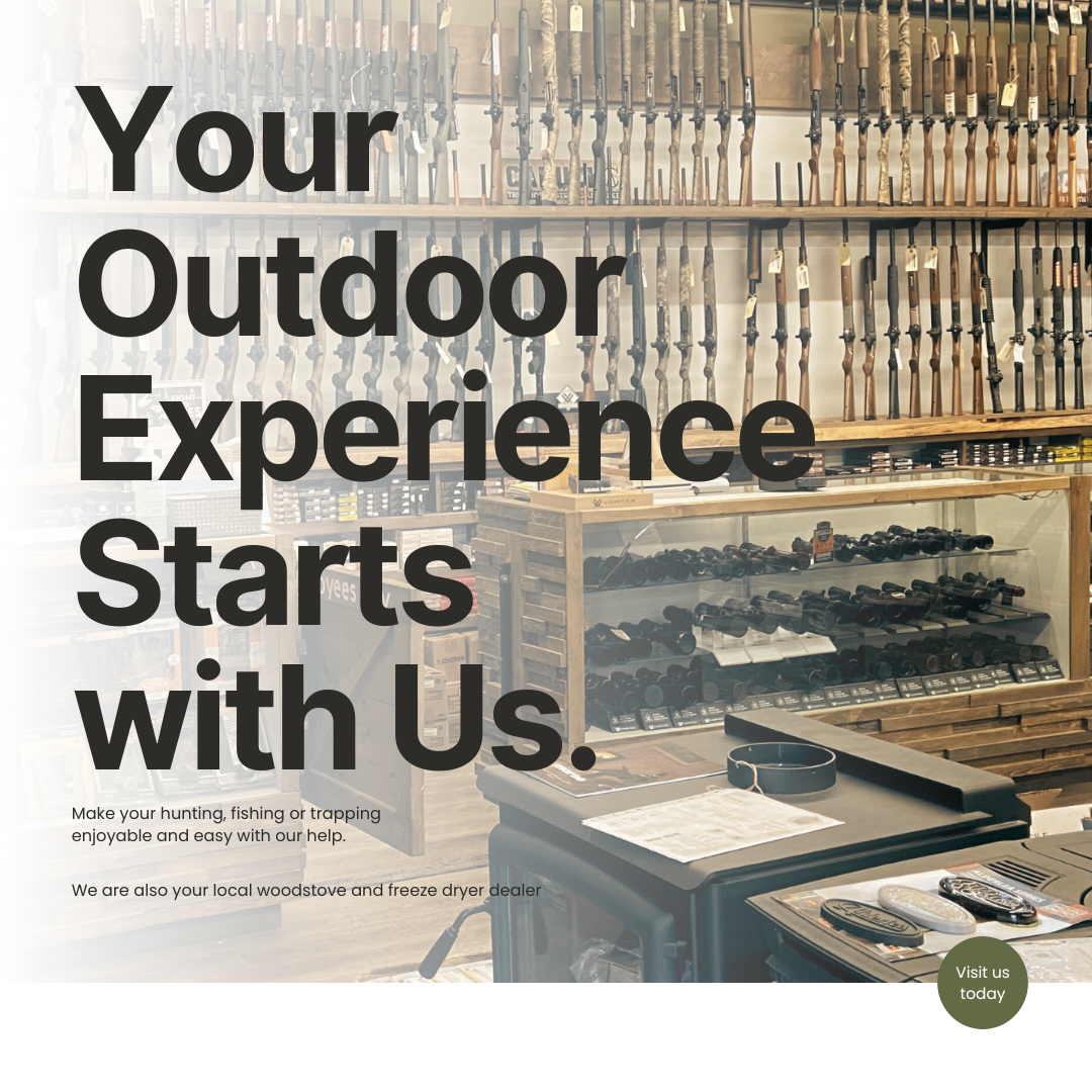 Rat River Outdoors is your store for everything hunting, fishing, trapping, food preservation and power stations. From new/used firearms, optics, traps, knives, rods, reels, bait and so much more.